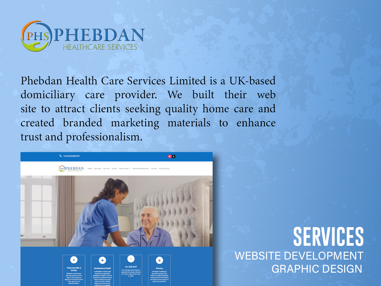 Phebdan Health Care Services Limited is a UK-based domiciliary care provider. We built their website to attract clients seeking quality home care and created branded marketing materials to enhance trust and professionalism